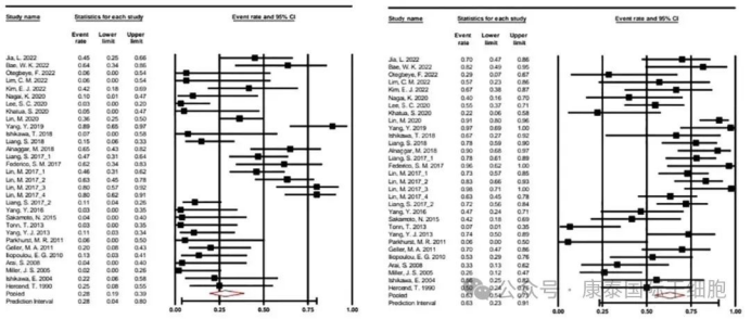 此次研究清晰地展现了NK细胞治疗多种实体瘤的整体成效。数据显示,在接受治疗的患者中,28.2%的患者肿瘤明显缩小,63.2%的患者病情得到有效控制。若仅关注2011年之后开展的研究,疗效更为显著,总体肿瘤缩小的比例提升至38.4%,病情控制的比例高达72.7%。这充分表明,随着技术的不断进步,NK细胞的生产工艺与治疗效果均有了显著提升。